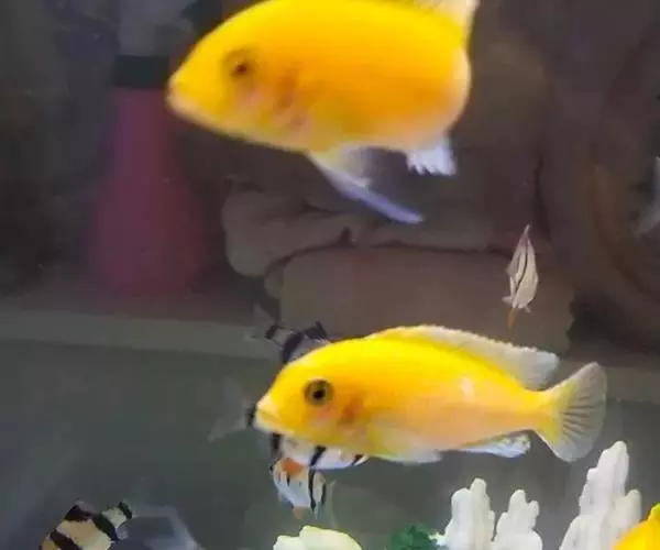 5、非洲王子鱼幼时雌雄均为橙黄色,到成鱼颜色会更加黄而且背上的黑边也会更明显。
