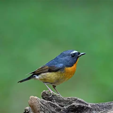 橙腹叶鹎体形大小和金额叶鹎相似,体长16~20厘米。额至后颈黄绿色,其余上体绿色,小覆羽亮钴蓝色,…