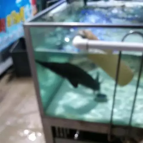 鸭嘴鱼学名:美国匙吻鲟(又名鸭嘴鲟),英文名:Polyodonspathala,匙吻鲟,学名“美国匙吻鲟”原产美国密西西比河流域,是一种大型淡水经济鱼类,属鲟形目匙吻白鲟科。是从3亿年之前(即恐龙时期)就在地球上生活,并存留下来的一种珍稀鲟鱼类,是世界上匙吻鲟科中仅有的两个品种之一。它与中华鲟以及长江水域中的白鲟同属鲟形目白鲟科。