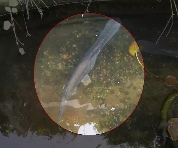 看其外观,鱼嘴扁平酷似鸭嘴,却比鸭嘴长几倍,50多厘米长的身子,又长又扁的嘴巴已经占了一大半。周身光滑,深灰色的鱼身,没有鳞片 。