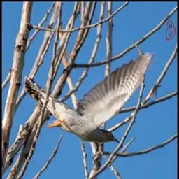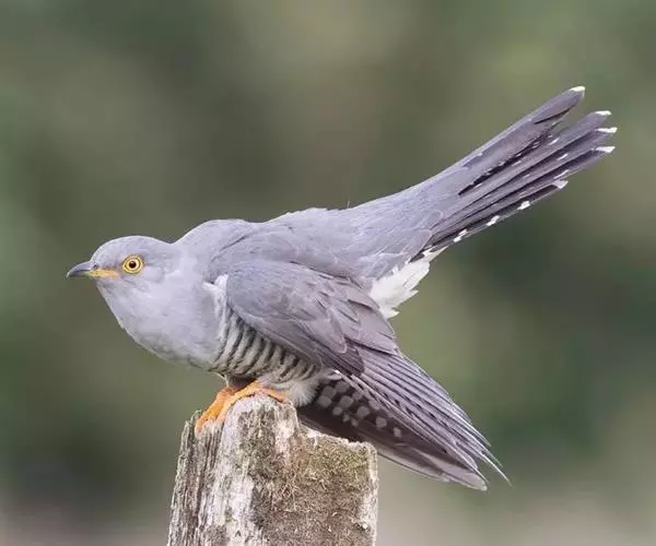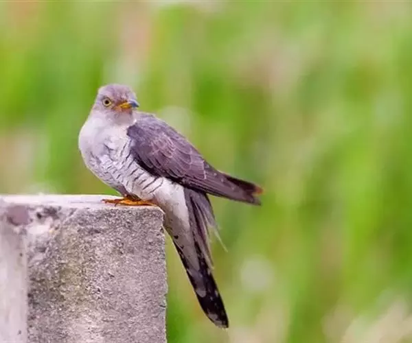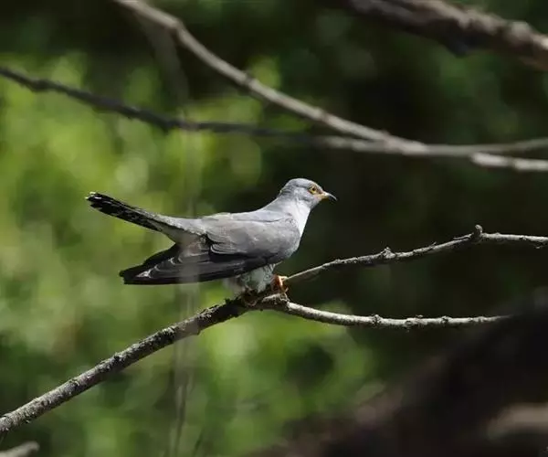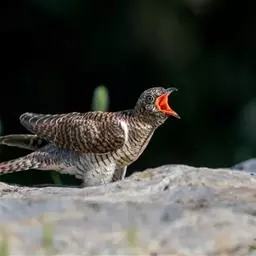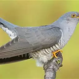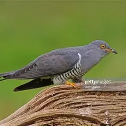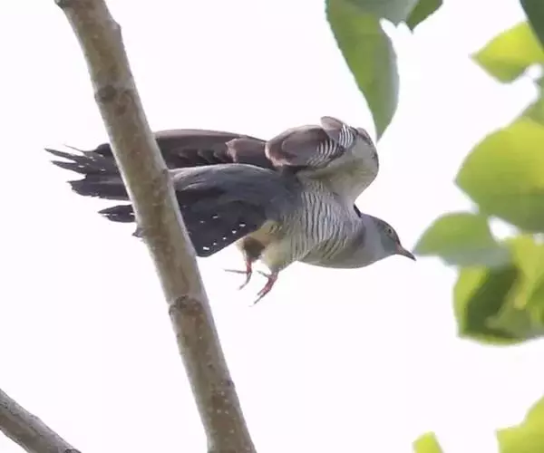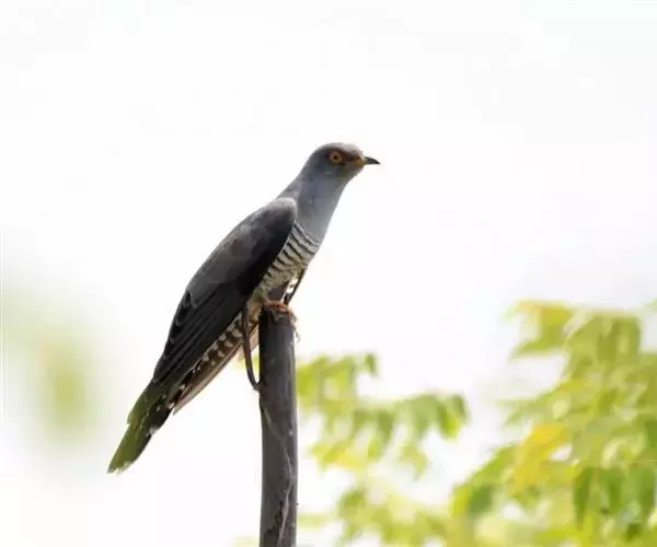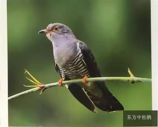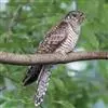 大杜鹃(学名:Cuculus canorus bakeri):是普通杜鹃的中国亚种。体长约320毫米,翅长约210毫米。雄鸟上体纯暗灰色;两翅暗褐,翅缘白而杂以褐斑;尾黑,先端缀白;中央尾羽沿着羽干的两侧有白色细点;颏、喉、上胸及头和颈等的两侧均浅灰色,下体余部白色,杂以黑褐色横斑。雌雄外形相似,但雌鸟上体灰色沾褐,胸呈棕色。又名喀咕、布谷、子规、杜宇、郭公、获谷等。