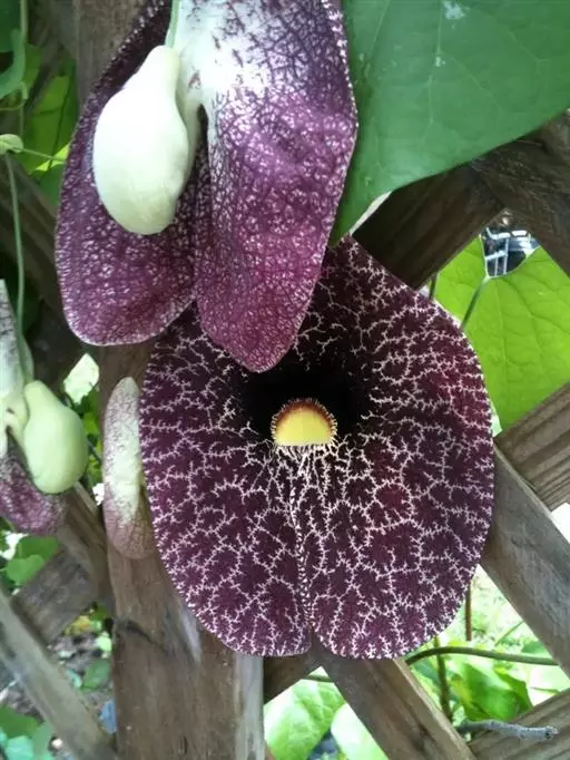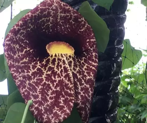 巨花马兜铃花朵的主要部分只有一片,看起来好像是一个巨大的、带有纹理的兜状物,而不像普通的花朵那样拥…