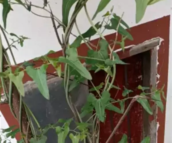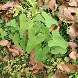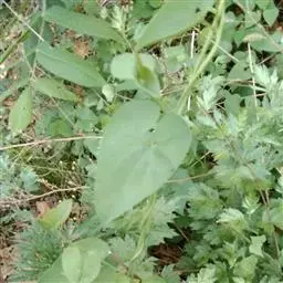 草质藤本。根圆柱形。茎柔弱,无毛。叶互生;叶柄长l-2cm,柔弱;叶片卵状三角形、长圆状卵形或戟形,长3-6cm,基部宽1.5-3.5cm,先端钝圆或短渐尖,基部心形,两侧裂片圆形,下垂或稍扩展;基出脉5-7条,各级叶脉在两面均明显。