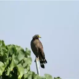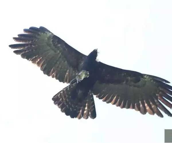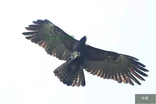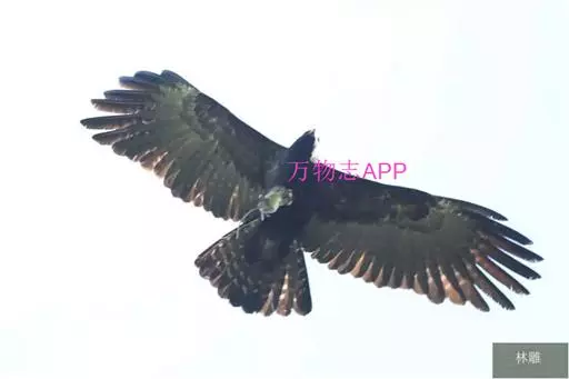 林雕(学名:Ictinaetus malayensis):为隼形目鹰科的鸟类,是一种中型猛禽,体长67-81厘米,翼展164-178厘米,体重1000-1600克。通体黑褐色,眼下及眼先具白斑;头、翼及尾色较深;尾较长,尾上覆羽淡褐具白横斑;尾羽有不明显的灰褐色横斑。虹膜黄色,脚黄色;爪长且微具钩,与其他雕类有别。中国国家Ⅱ级重点保护动物。