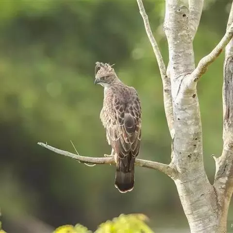 鹰雕,是隼形目鹰科鹰雕属大型猛禽,俗称熊鹰、赫氏角鹰。其上体暗褐色,头后冠羽常竖立起,…