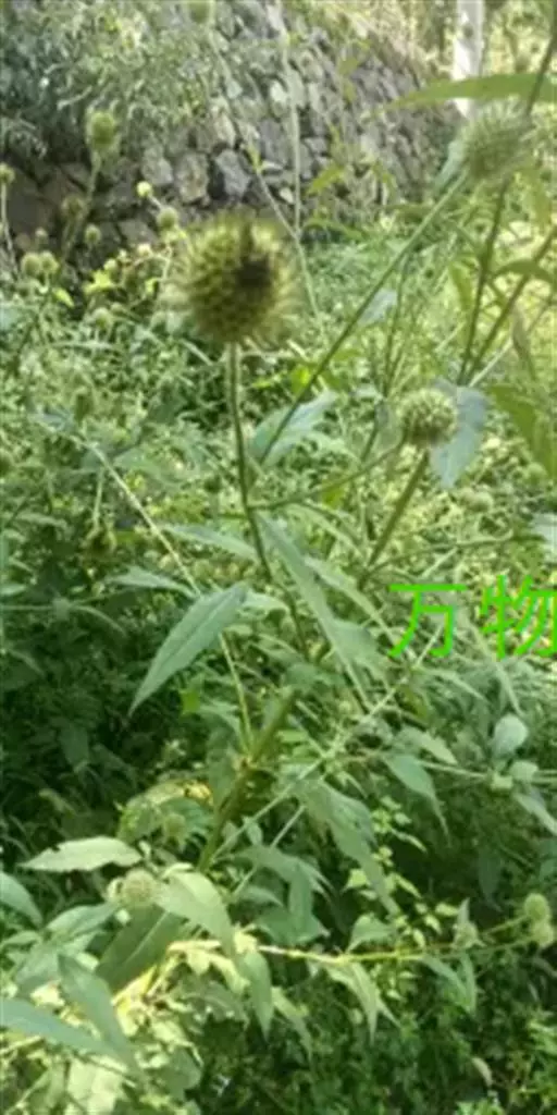 川续断 多年生草本,高达2米;主根1条或在根茎上生出数条,圆柱形,黄褐色,稍肉质;茎中空,具6-8条棱,棱上疏生下弯粗短的硬刺。
