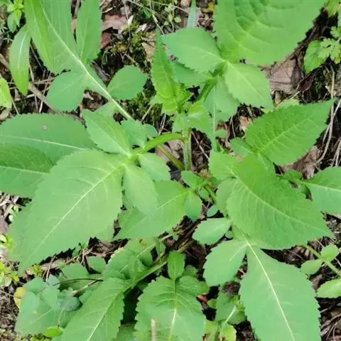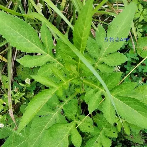 基生叶稀疏丛生,叶片琴状羽裂,长15-25厘米,宽5-20厘米,顶端裂片大,卵形,长达15厘米,宽9厘米,两侧裂片3-4对,侧裂片一般为倒卵形或匙形,叶面被白色刺毛或乳头状刺毛,背面沿脉密被刺毛;叶柄长可达25厘米;茎生叶在茎之中下部为羽状深裂,中裂片披针形,长11厘米,宽5厘米,先端渐尖,边缘具疏粗锯齿,侧裂片2-4对,披针形或长圆形,基生叶和下部的茎生叶具长柄,向上叶柄渐短,上部叶披针形,不裂或基部3裂。