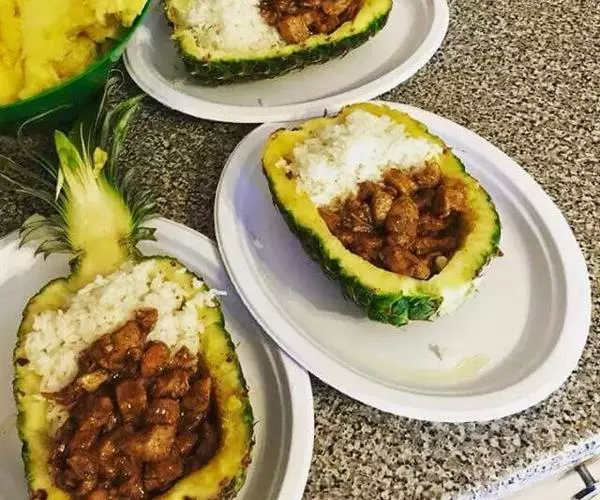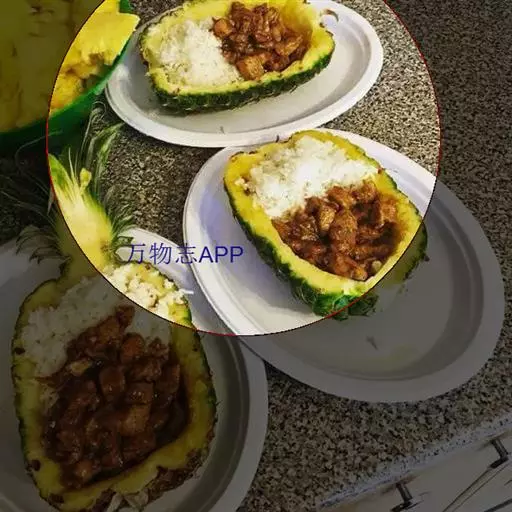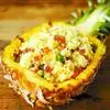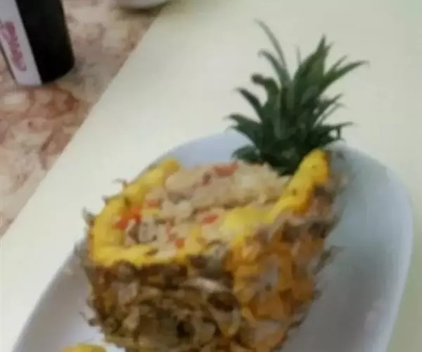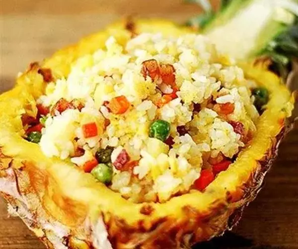 菠萝饭,又叫凤梨饭,是以菠萝、米饭等食材制成的一道美食。菠萝内含维生素A、B、C,钙、磷、钾等矿物质,脂肪,蛋白质等。