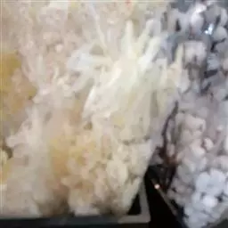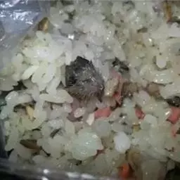 5、在米饭里拌上白糖,枸杞子和葡萄干;