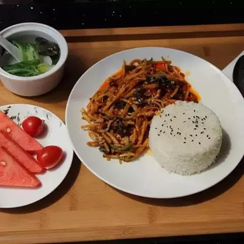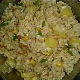 有的人会对菠萝过敏,食用后15~60分钟内会出现腹痛、呕吐、腹泻、头晕、皮肤潮红、全身发痒、四肢及口舌发麻,严重的还可能出现呼吸困难甚至休克的症状。这就是“菠萝病”。是因为菠萝中含有的生物甙和菠萝蛋白酶引起的人体过敏,为了避免这种情况发生食用前可以将其切成片用盐水或苏打水浸泡20分钟。菠萝适合在夏季食用,可以解暑止渴,消食止泻。女性常吃菠萝可以使皮肤光滑滋润。 菠萝饭 米饭的主要成分是碳水化合物,米饭中的蛋白质主要是米精蛋白,氨基酸的组成比较完全,人体容易消化吸收;大米可提供丰富B族维生素;大米具有有补中益气、健脾养胃、益精强志、和五脏、通血脉、聪耳明目、止烦、止渴、止泻的功效。