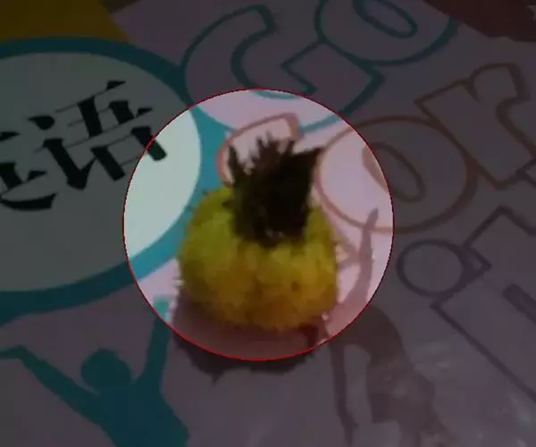 3、菠萝洗净外皮,顶部切掉一小块当盖子,挖空里面的菠萝肉;