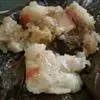 6、拌入挖出来的菠萝肉和菠萝汁;