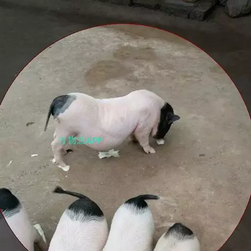 体躯矮小。头较直,额部皱纹浅而少,耳较小而薄、略向两侧平伸或稍下垂。背腰宽而微凹,腹大丰圆触地,后躯较丰满。四肢短细,后肢多卧系。皮薄肉细。毛色多全黑,但亦有“六白”或不完全“六白”的特征,据对206头猪调查,全黑的占98.44%。乳头一般5-6对,据对206头猪的统计,为10.04±10.03枚,5对乳头者占93.2%。