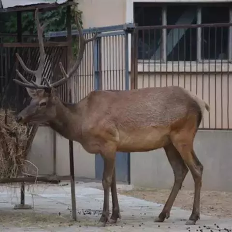 白唇鹿:体形高大,体长约2米,通体被毛十分厚密,毛粗硬且无绒毛,毛色在冬夏有差别。鼻端两侧、下唇记…