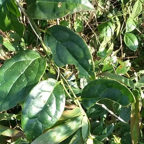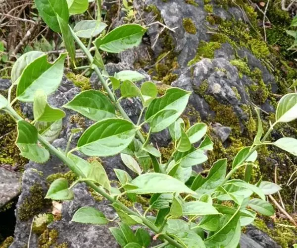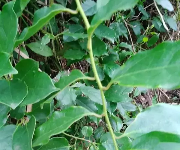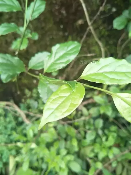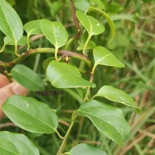 落叶攀援木质藤本;嫩枝绿色,被细柔毛,老枝紫褐色,具白蜡层,常留有木质化成单刺状或双刺状的叶柄基部。芽鳞阔卵形,具缘毛。叶近纸质,卵状椭圆形、卵形或阔卵形,长3.5-9厘米,宽2-4.5厘米,叶面深绿色,中脉有稀疏毛,叶背带白色,脉上被稀疏柔毛,侧脉每边3-5条;叶柄长2-5毫米,被柔毛。