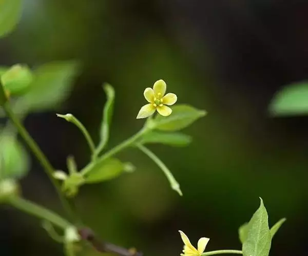 花先叶开放,单生于叶腋,基部有苞片4枚,苞片倒卵形,长2-4毫米;花梗长2-4毫米,果时增长至2-2.5厘米;萼片5,近圆形或阔卵形,长约0.5毫米,具缘毛;花瓣5片,淡黄绿色,倒卵形或长圆状倒卵形,长3-4毫米,具脉纹;雄蕊5枚,花药狭椭圆形,外向开裂;花盘杯状,有5裂齿;子房卵形,被细毛。分果爿近圆形或肾形,直径约5毫米;核有明显的中肋,两侧面具蜂窝状凹穴,腹部平。花期2-3月,果期4-7月。