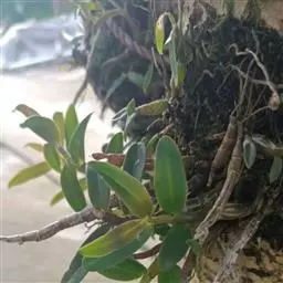 重唇石斛:茎下垂,圆柱形或有时从基部上方逐渐变粗,具少数至多数节。叶薄革质,狭长圆形或长圆状披针形。…