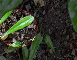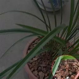方法一 准备好兰盆及植料后,将兰株倒拿(根在上,叶在下)放于水龙头下以慢水冲洗,但水压切忌过强,以免伤兰根及叶子。用拇指和食指抓住兰头,小指抵住盆缘,用竹筷将根固定,当放入盆内时,尽量不要让根接触到盆壁。将豆粒大的混合石砾倒入盆底至三分之一处。然后倒入中粒植料至五分之四处,填实和尽量不要留下空间。将竹筷拔出,并摇实盆中植料。填实植料后,再用大粒植料埴入至距盆缘1.5厘米处。最后再倒入豆粒大植料,以将假鳞茎全部埋入土中为度,然后充分摇实。用压土工具轻压植料,并将表面弄平。种植完毕后,植料在盆中以中央稍高为好。