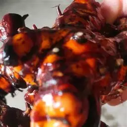4、炒香后,将腌制好的肋骨放入豆豉酱中滚动,均匀粘上;