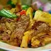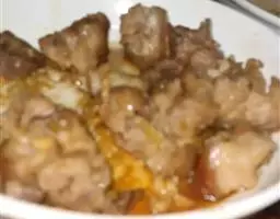 4.炒好后,把丁汁浇在蒸好的排骨上,就可以了!
