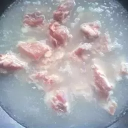 1、排骨先斩成3厘米见方的小块。(这一步很重要呵)然后放在水龙头下用水猛冲它3分钟除去血污色;还一种方法就是用水浸一会后换水再浸,起码换它三次吧,总之看到排骨变淡色没有血水。