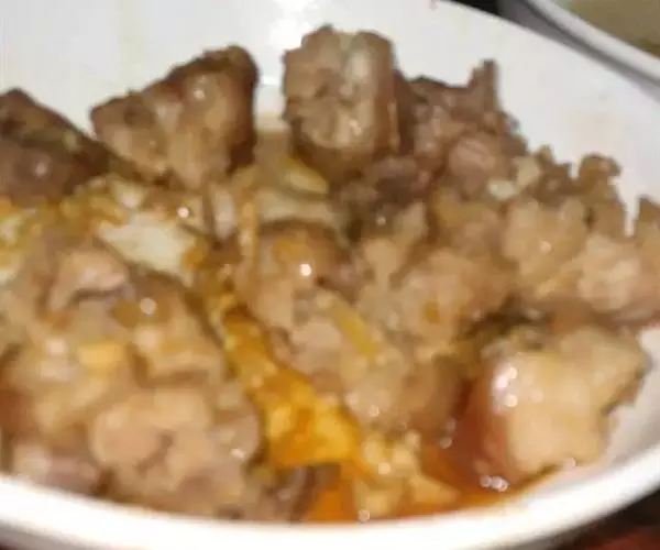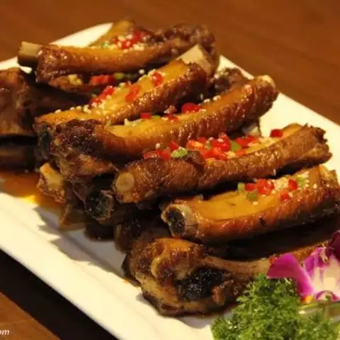 8、取出来,再撒上些葱花。试试感觉如何?嚼一块,呵呵!肉骨分离,骨香肉嫩、浓香惹味。