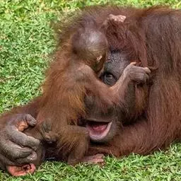 猩猩也叫人猿,灵长目人科 的一属,与猴子最大不同的地方就是没有尾巴,能用手或脚拿东西。马来语和印…
