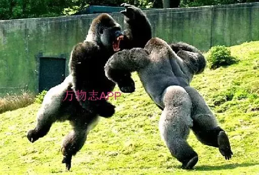 山地大猩猩 山地大猩猩生活在非洲中部很小的一块地区内,过着高度群居的生活,每群由一个被称为“银背”的成年雄性大猩猩领导。每一群里都有好几只雌猩猩和它们的孩子,“银背”带领大家寻找食物,并找地方让大家晚上休息,它们折弯树枝来搭窝睡觉。“银背”用叫喊、捶胸这样的吓唬方式赶走其他雄性大猩猩。