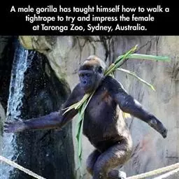 山地大猩猩天生惧怕某些爬行动物,但原因不明。猩猩婴儿天生会追踪任何会行动的物体,但会逃避变色龙及毛虫。山地大猩猩怕水,只会在不会弄湿的情况下过河。
