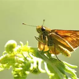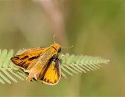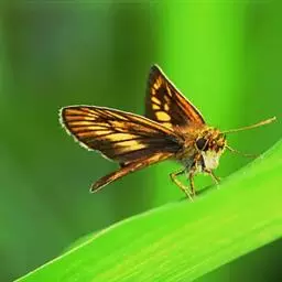 姜弄蝶 Udaspes folus ,又叫银斑姜蝶。幼虫吐丝粘叶成苞,隐藏其中取食,…