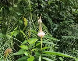 密苞山姜是姜科,山姜属多年生草本植物,株高可达1.5米。叶片椭圆状披针形,顶端渐尖,并具细尾尖,基…
