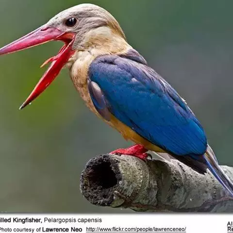 鹳嘴翡翠:体长33-37厘米。体重140-200克。共有13个亚种,体型大,嘴形巨大、侧扁,似鹳嘴…