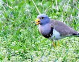 灰头麦鸡是鸻形目鸻科麦鸡属鸟类,繁殖期头、颈及胸灰色;胸部和腹部之间有黑色胸带分隔;背部及两翼大部分覆羽褐色;腹部和腰部白色;尾羽基部及边缘白色,近末端有黑色斑块。非繁殖期头颈部染褐色,颏及喉部白色,胸带不明显。初级飞羽黑色,其余飞羽及与之相邻的部分覆羽白色;虹膜红褐色,眼圈黄色;嘴尖段黑色,后段黄色;腿和脚黄色。灰头麦鸡分布于欧亚大陆及非洲北部、中南半岛以及太平洋诸岛屿,在中国分布于东南沿海地区。栖息于丘陵、平原地区河流、湖泊和沼泽等水体附近。繁殖期成对活动,其余时间集群活动。主要啄食甲虫、蝗虫、蚱蜢等昆虫,也吃水蛭、螺、蚯蚓、软体动物和植物叶片及种子。繁殖期为5—7月,1年繁殖1窝,每窝产卵4枚。灰头麦鸡被列入中国国家林业局发布的《国家保护的有益的或者有重要经济、科学研究价值的陆生野生动物名录》。