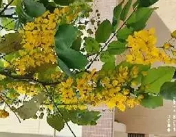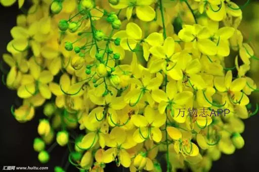 花期在5月,初夏满树金黄色花,花序随风摇曳、花瓣随风而如雨落,所以又名“黄金雨”。