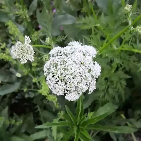 伞形花序有伞辐10-20(30),近等长,约2.5厘米,光滑;总苞片1-2,线形,尖锐,革质;小伞花序有花20,小总苞片6-8,线形或线状钻形,长约为花柄的一半并与之紧贴;花瓣长0.5-0.7毫米。