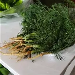 ④蕨叶香芹 叶片不卷皱,但深裂成许多分离的细线状,外观轻而优美。主要用作盘菜的装饰。