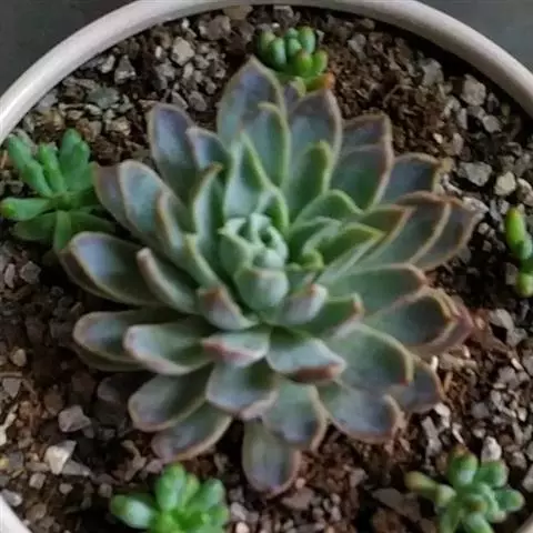 女雏是景天科石莲花属的多肉植物。特征是小巧的株形和橙粉色叶缘。极易生侧芽,…