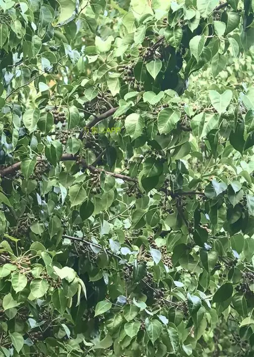 菩提树 大乔木,幼时附生于其他树上,高达15-25米,胸径30-50厘米;树皮灰色,平滑或微具纵纹,冠幅广展;小枝灰褐色,幼时被微柔毛。