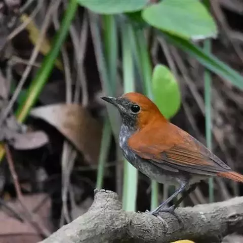 红尾歌鸲:体长13-15厘米。上体橄榄褐色。尾羽棕栗色,眼先和颊黄褐色,眼周淡黄褐色。…