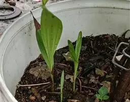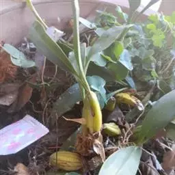 方法一 准备好兰盆及植料后,将兰株倒拿(根在上,叶在下)放于水龙头下以慢水冲洗,但水压切忌过强,以免伤兰根及叶子。用拇指和食指抓住兰头,小指抵住盆缘,用竹筷将根固定,当放入盆内时,尽量不要让根接触到盆壁。将豆粒大的混合石砾倒入盆底至三分之一处。然后倒入中粒植料至五分之四处,填实和尽量不要留下空间。将竹筷拔出,并摇实盆中植料。填实植料后,再用大粒植料埴入至距盆缘1.5厘米处。最后再倒入豆粒大植料,以将假鳞茎全部埋入土中为度,然后充分摇实。用压土工具轻压植料,并将表面弄平。种植完毕后,植料在盆中以中央稍高为好。