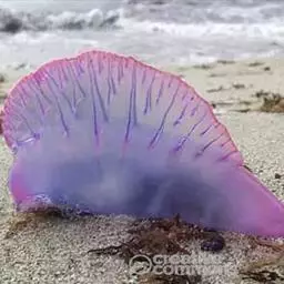 僧帽水母是腔肠动物的一种,它属于水螅虫纲,呈蓝青色,浮囊两头尖,底平,形如僧侣的帽子,…