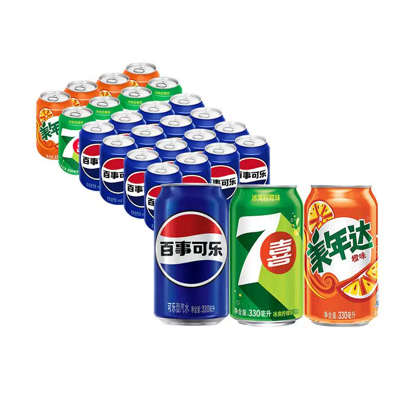 碳酸水(水,二氧化碳),白砂糖,柠檬酸,苯甲 美年达系列饮料 酸钠,食用香精,山梨酸钾,焦糖色,苋菜红,维生素C,柠檬黄,柠檬酸钠,日落黄,胭脂红,葡萄皮红,亮蓝。