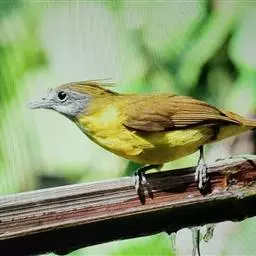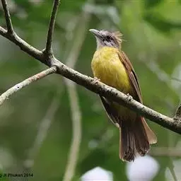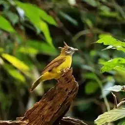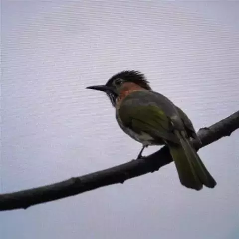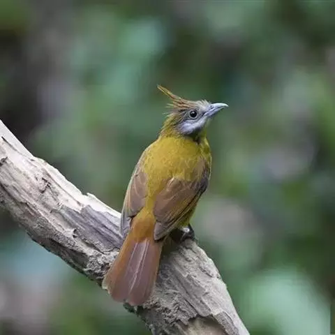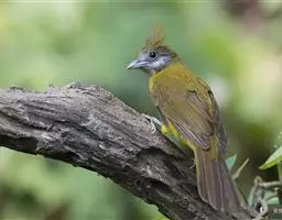 黄腹冠鹎:体长19-24厘米,是一种体型略大的褐色鹎。头顶橄榄褐色具黑褐色羽冠。白色的喉膨起,…