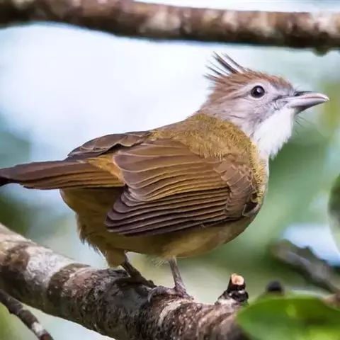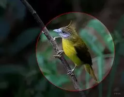 黑冠黄鹎:体长18-21厘米,是一种中等体型偏黄色鹎。整个头、颈、颏、喉黑色,头顶有显著直立的羽冠,…
