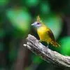 凤头雀嘴鹎:属小型鸟类,体长18-22厘米。嘴粗短、呈象牙色或乳黄色,前额和脸灰色,头顶黑色,…