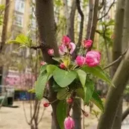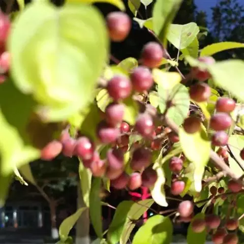 ④使用可选方式众多:抚顺红叶海棠树形多样,叶茂花繁,丰盈娇艳,可地栽装点园林。可以门庭两侧对植,或在亭台周围、丛林边缘、水滨布置;若在观花树丛中作主体树种,其下朽植春花灌木,其后以常绿树为背景,则尤绰约多姿,妩媚动人。若在草坪边缘、水边湖畔成片群址,或在公园游步道旁两偏信则暗 列植或丛植,亦具特色。海棠不仅花色艳丽,其果实亦玲珑可观。至秋季果实成熟,红黄机映高悬枝间,恰似红灯点点,别具风姿。每当科末春初,大雪纷飞,在一片银装素裹的世界里,庭园中有几株挂清茶红色小果的海棠,不仅为园林冬景增色,同时也为冬季招引鸟灯提供上好的饮料。同时,海棠对二氧化硫有较强的抗性,故适用于城市街道绿地和厂矿区绿化。