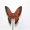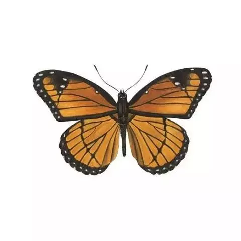 黑脉金斑蝶:翅阔8.6-12.4厘米。雄蝶较雌蝶为大。成年蝶颜色鲜艳,翅膀上有显眼的橙色及黑色斑纹…