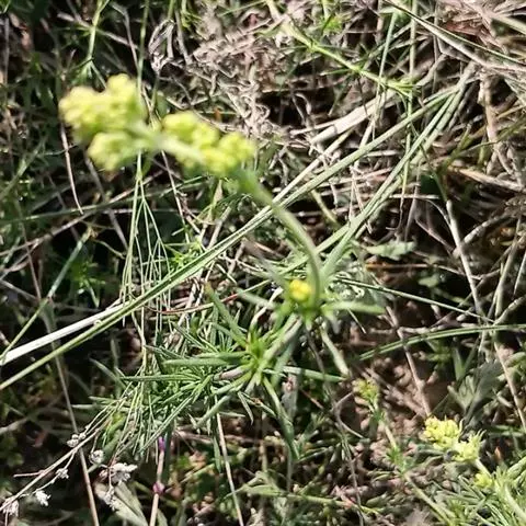 六叶葎 Ehrend. & Schönb.-Tem. ex R. R. Mill)是茜草科拉拉藤属的一年生草本。常直立,有时披散状,高10-60厘米左右,近基部分枝,有红色丝状的根;茎直立,具疏短毛或无毛;叶片薄,纸质或膜质,长圆状倒卵形、倒披针形、卵形或椭圆形顶端钝圆而具凸尖;聚伞花序顶生和生于上部叶腋,苞片常成对披针形,花冠白色或黄绿色,裂片卵形,雄蕊伸出;果近球形,单生或双生,密被钩毛;花期4-8月;果期5-9月。六叶葎分布于中国北、山西、陕西、甘肃、江苏、安徽、浙江、江西、河南、湖北等地,印度、巴基斯坦、尼泊尔、锡金、不丹、缅甸、日本、朝鲜、俄罗斯均有栽培。生于海拔920-3800米的山坡、沟边、河滩、草地的草丛或灌丛中及林下。六叶葎味甘,性平,具有清热解毒、利尿消肿的功效,可用于治疗尿路感染、赤白带下、痢疾、痛肿、跌打