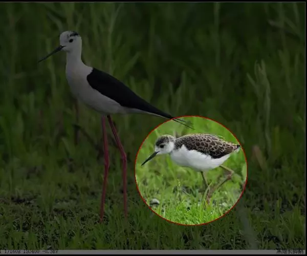 幼鸟和夏羽相似。但头顶和上体有更多亮栗色、白色,和皮黄色羽缘。在翕和肩部、白色羽缘形成明显的V形斑。眉纹白色,眼前较显著。有时分裂成双眉。前颈和胸皮黄色,具显著的褐色纵纹;腹白色,与有斑纹的胸明显分开。