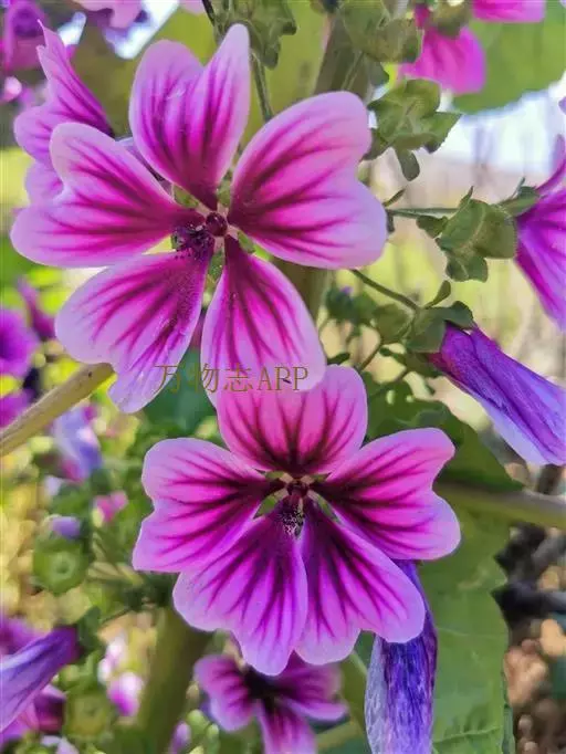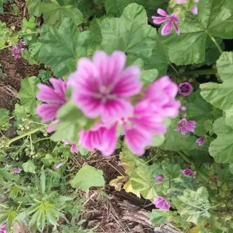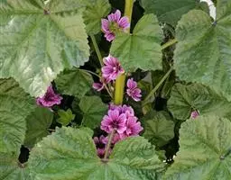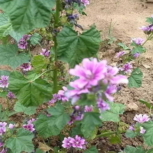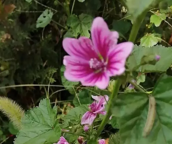 锦葵(学名:Malva sinensis Cavan.):二年生或多年生直立草本,高50-90厘米,分枝多,疏被粗毛。叶圆心形或肾形,具5-7圆齿状钝裂片,两面均无毛或仅脉上疏被短糙伏毛。花3-11朵簇生,小苞片3,长圆形疏被柔毛;花紫红色或白色,直径3.5-4厘米,花瓣5,匙形,长2厘米,先端微缺,爪具髯毛。果扁圆形,分果爿9-11,肾形,被柔毛;种子黑褐色,肾形,长2毫米。花期5-10月。